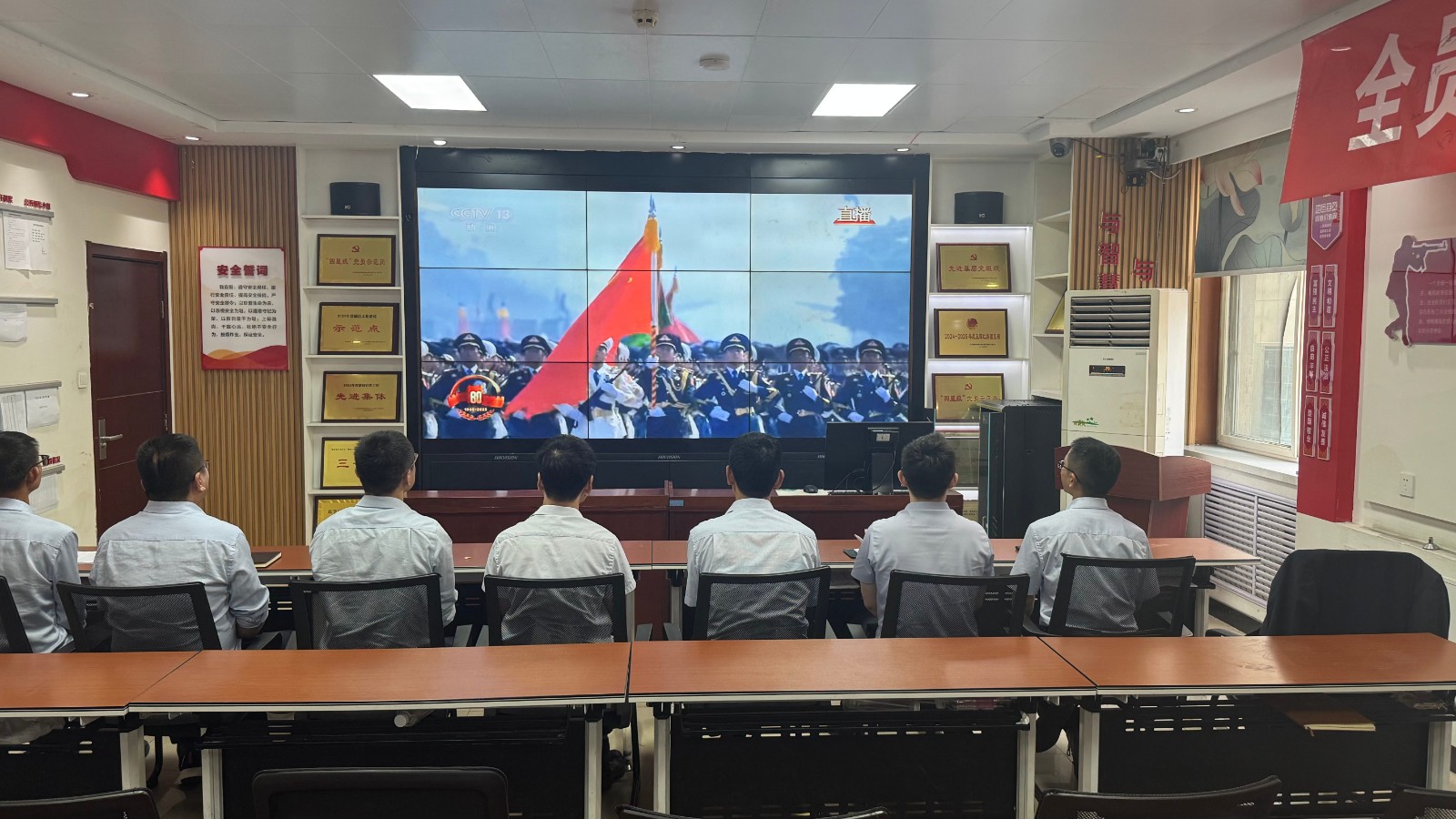 歷史燭照未來,精神永續(xù)傳承。為深切緬懷在抗日戰(zhàn)爭中英勇獻(xiàn)身的革命先烈,大力弘揚(yáng)偉大的抗戰(zhàn)精神,引導(dǎo)全體黨員、職工銘記光輝歷史、堅(jiān)定理想信念、強(qiáng)化責(zé)任擔(dān)當(dāng),9月3日,機(jī)運(yùn)工區(qū)黨支部組織開展了“銘記歷史偉業(yè),傳承紅色基因”主題黨日活動(dòng),組織全體黨員集中觀看紀(jì)念中國人民抗日戰(zhàn)爭暨世界反法西斯戰(zhàn)爭勝利80周年閱兵儀式現(xiàn)場(chǎng)直播。上午九時(shí)整,機(jī)運(yùn)工區(qū)全體黨懷著無比崇敬與激動(dòng)的心情,目光齊聚屏幕。伴隨著激昂雄壯的國歌奏響,鮮艷的五星紅旗在天安門廣場(chǎng)冉冉升起,大家心潮澎湃,肅然起敬。隨后,規(guī)模宏大、氣勢(shì)磅礴的閱兵式正式開始。屏幕上,一個(gè)個(gè)整齊劃一、威武雄壯的徒步方隊(duì),邁著鏗鏘有力、撼人心魄的步伐走過檢閱臺(tái),堅(jiān)毅的眼神、挺拔的身姿,充分展現(xiàn)了新時(shí)代軍人聽黨指揮的忠誠品格和能打勝仗的過硬本領(lǐng);一列列代表著國家科技實(shí)力與國防現(xiàn)代化建設(shè)最新成果的裝備方隊(duì),鐵流滾滾,氣勢(shì)如虹,尖端武器依次亮相,彰顯了捍衛(wèi)國家主權(quán)、安全、發(fā)展利益的堅(jiān)定決心與強(qiáng)大能力;雄鷹呼嘯,劃破長空,戰(zhàn)機(jī)編隊(duì)以精準(zhǔn)的隊(duì)形和磅礴的氣勢(shì)接受檢閱,描繪出壯美的藍(lán)天畫卷,宣示著捍衛(wèi)國家領(lǐng)空安全的鋼鐵意志。整個(gè)閱兵過程,秩序井然、威武雄壯、氣勢(shì)恢宏,生動(dòng)詮釋了人民軍隊(duì)“聽黨指揮、能打勝仗、作風(fēng)優(yōu)良”的強(qiáng)軍目標(biāo),全方位展示了在黨的堅(jiān)強(qiáng)領(lǐng)導(dǎo)下,國家日益強(qiáng)大的綜合國力和維護(hù)世界和平的堅(jiān)定信念。屏幕前,黨員們?nèi)褙炞ⅲ瑹o不被這震撼人心的場(chǎng)面所感染,民族自豪感與榮譽(yù)感油然而生,現(xiàn)場(chǎng)不時(shí)響起由衷的贊嘆和熱烈的掌聲。通過本次“銘記歷史偉業(yè),傳承紅色基因”主題黨日活動(dòng),機(jī)運(yùn)工區(qū)黨支部全體黨員經(jīng)歷了一次深刻的精神淬煉與思想升華。大家的歷史使命感、民族自豪感、崗位責(zé)任感得到顯著增強(qiáng),紛紛表示以更加飽滿昂揚(yáng)的精神狀態(tài)、更加求真務(wù)實(shí)的工作作風(fēng)、更加開拓創(chuàng)新的進(jìn)取意識(shí),恪盡職守,銳意進(jìn)取,全力以赴保障原煤運(yùn)輸安全高效,為工區(qū)及公司的持續(xù)高質(zhì)量發(fā)展貢獻(xiàn)全部力量!